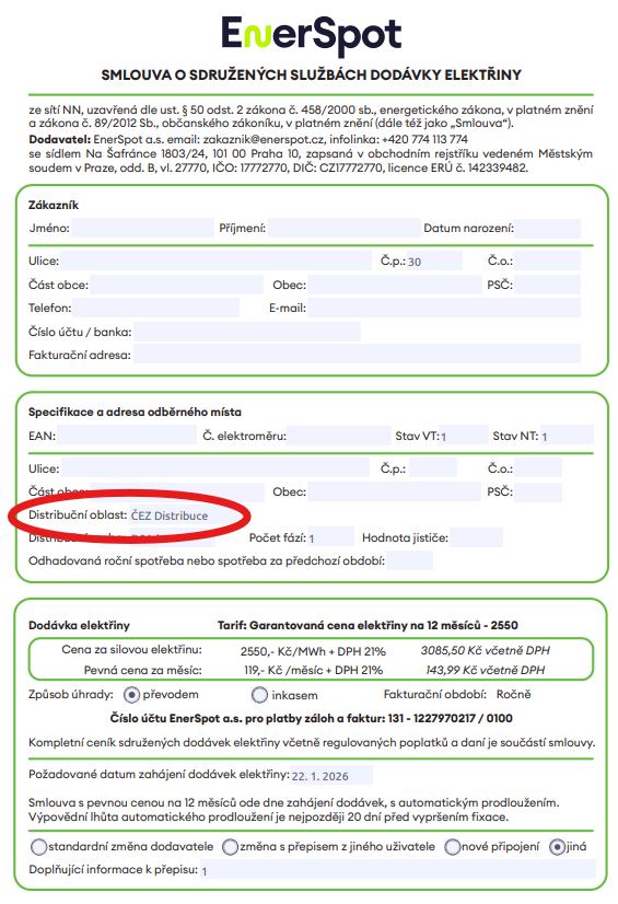 Pokud si nejste jisti, kdo je Váš distributor, najdete to na naší smlouvě: